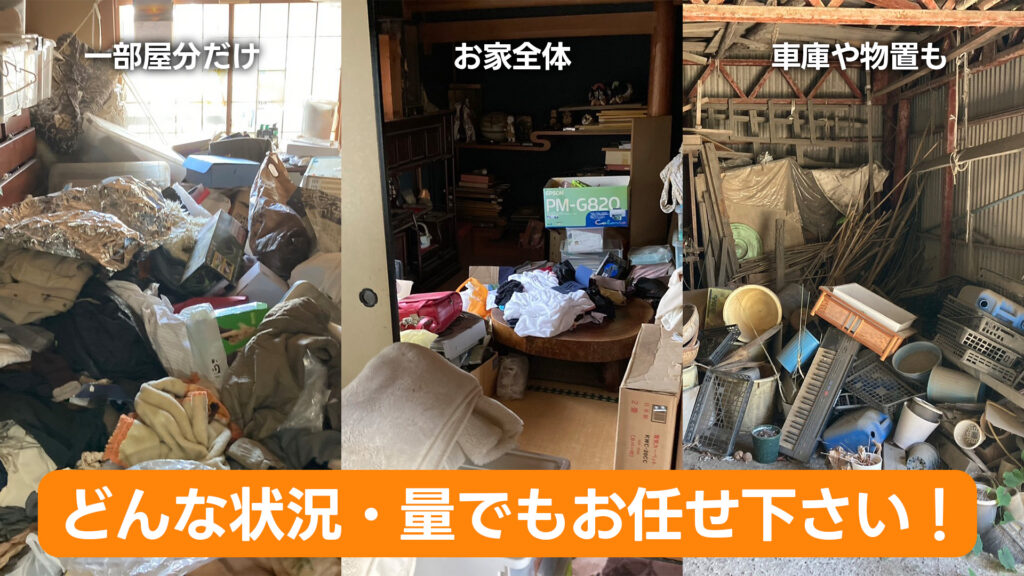 少量の不用品片付けからお家全体まで、どんな状況や量でもお片付け致します!