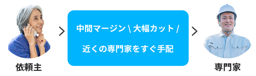 独自のシステム構築により依頼主と専門家を直接おつなぎし、どこよりも早く、そして納得のコスパを実現しております。
